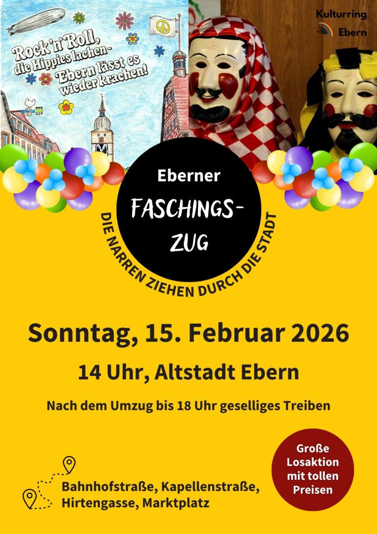 Ebern – Am Faschingssonntag, 15. Februar 2026 wird sich ab 14 Uhr wieder der Eberner Gaudiwurm durch die Altstadt schlängeln. Vereine, Gruppierungen und Institutionen wurden
